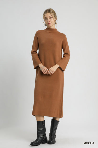 mock neck long sleeve knit midi