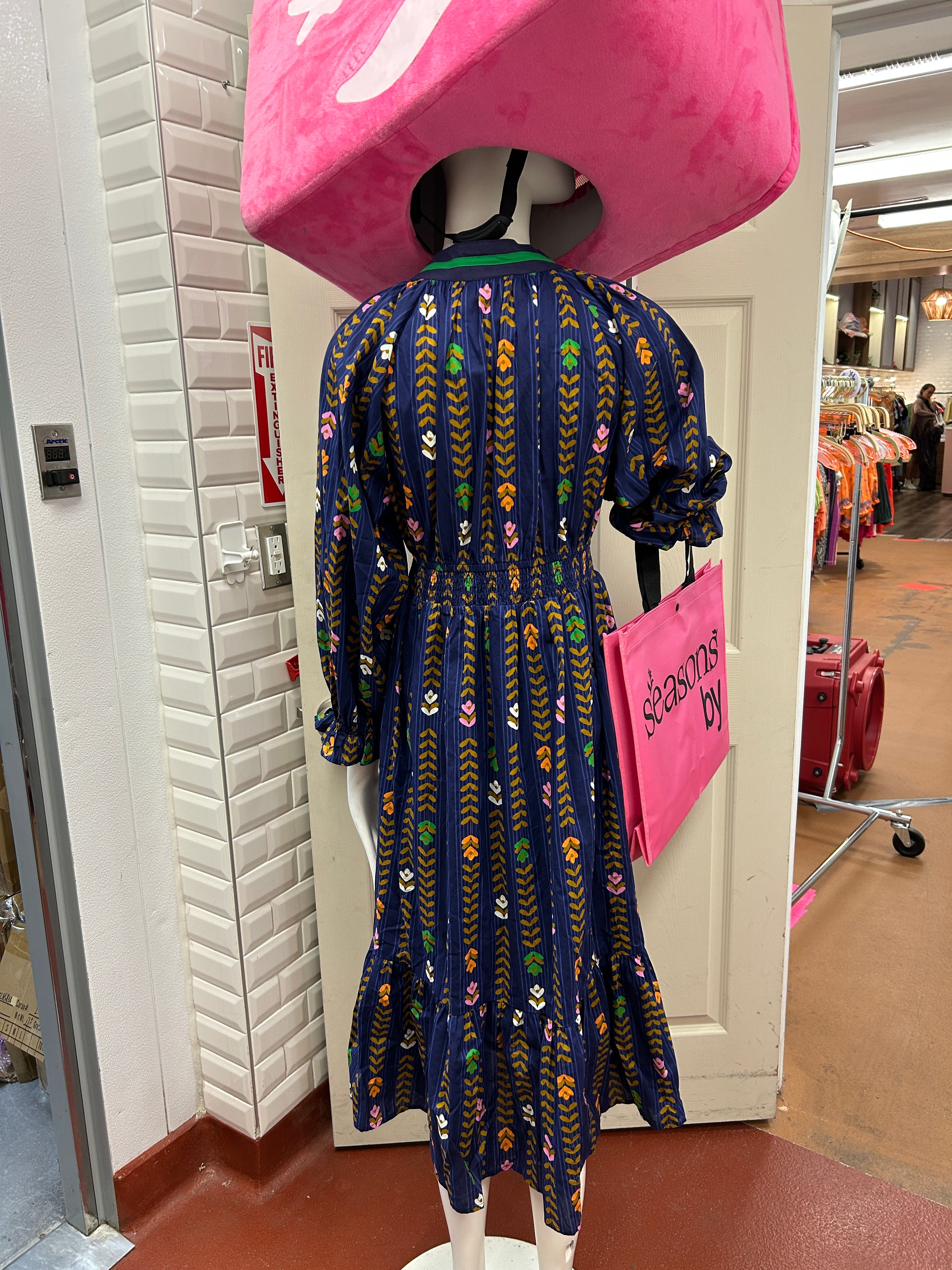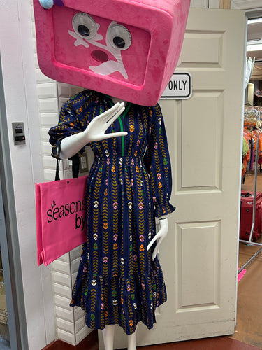 Two Tone Border Print Midi Dress