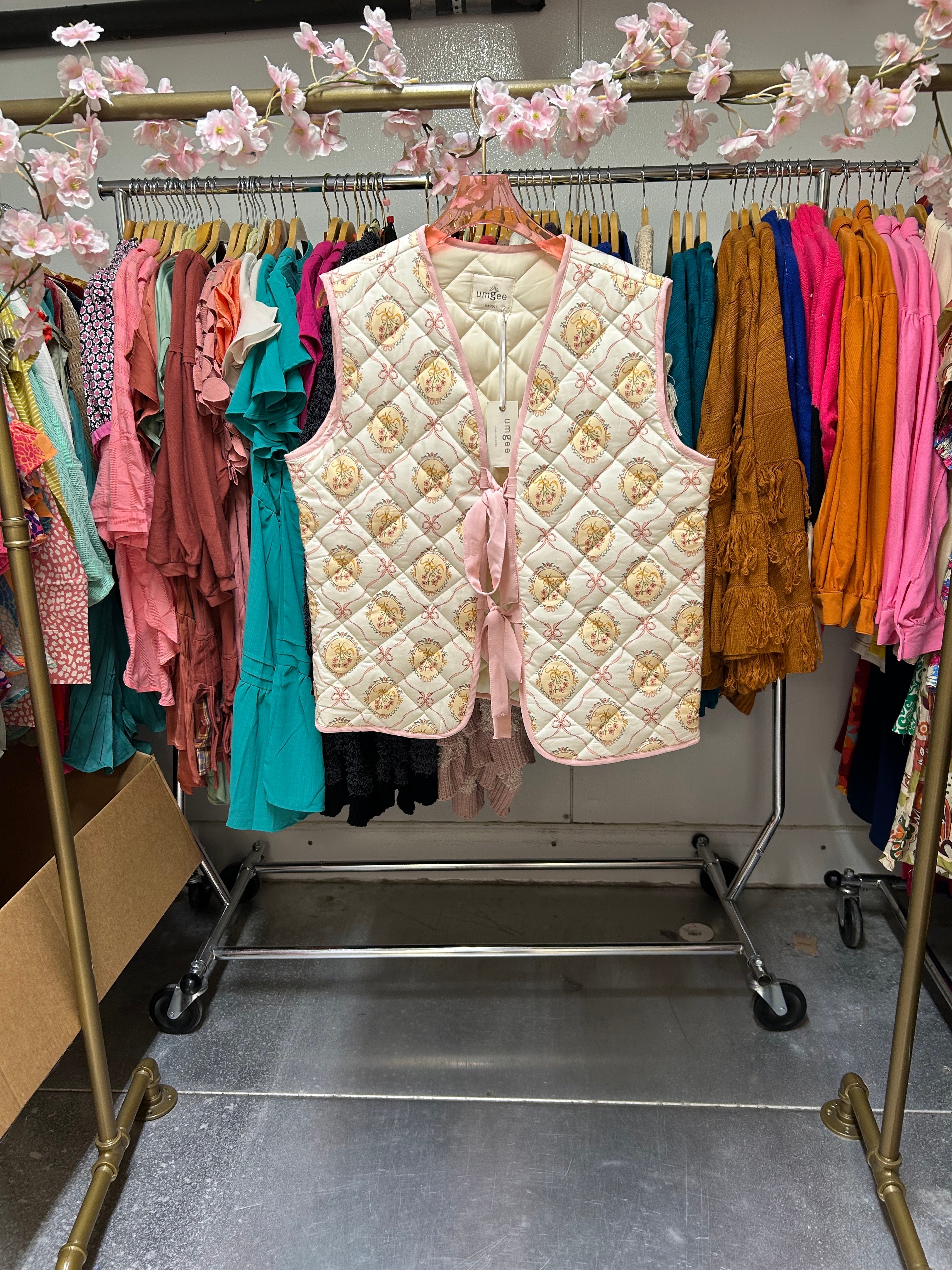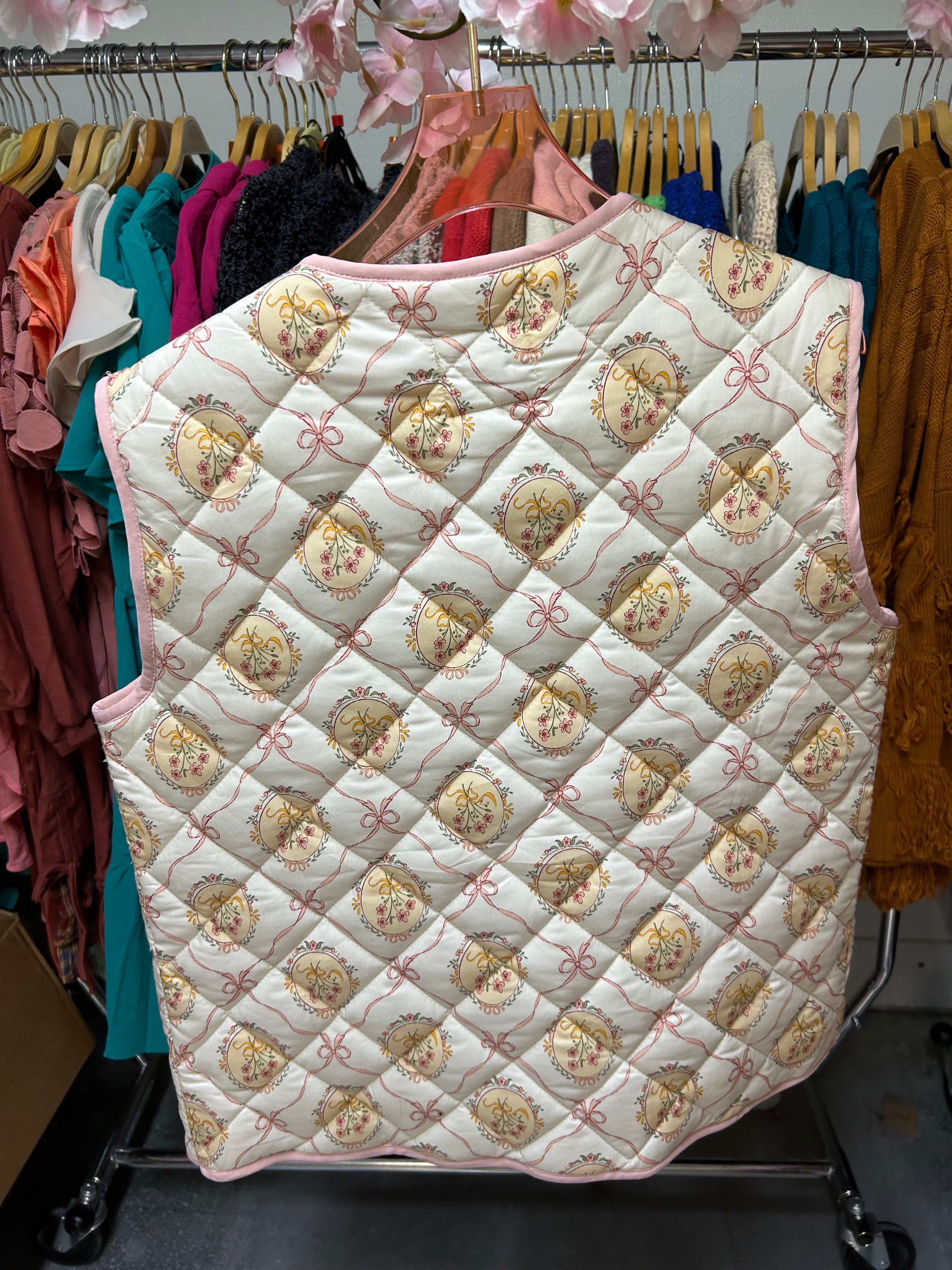 #FLORAL #PRINT #QUILTED #VEST WITH FRONT RIBBON TIE