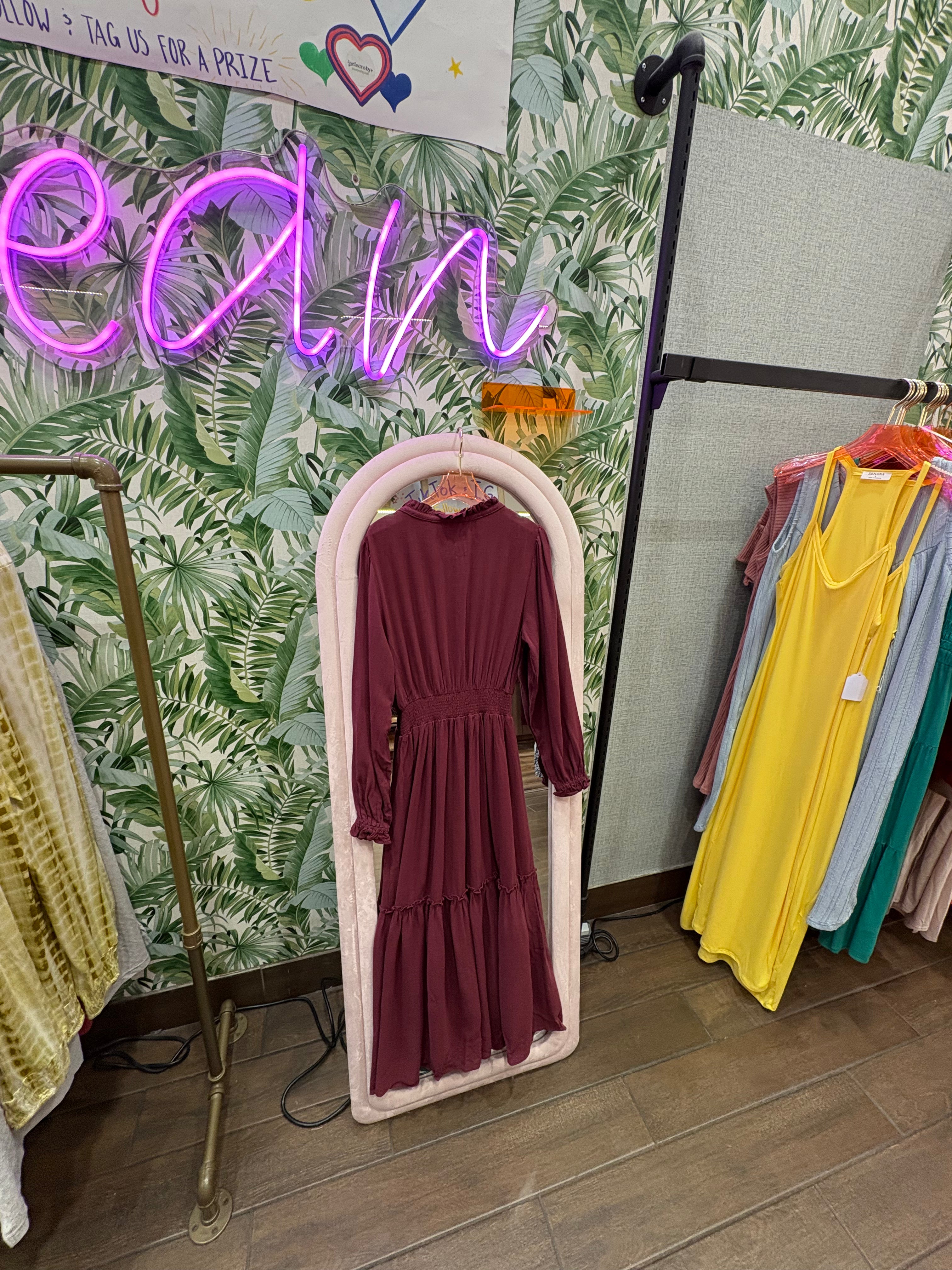 V-CUT FRONT TIE MAXI BASIC DRESS
