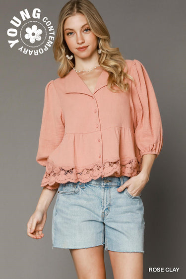 cotton gauze top with floral details