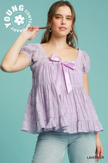 textured fabric square neck top
